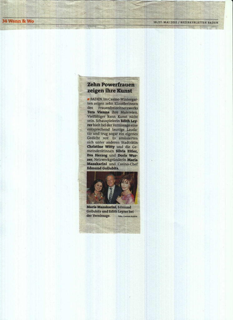10. Mai 2012 Tera-ViennART „Frauenpower in der Kunst“ Vernissage im Casino Baden 2. Juni 2012 Pressespiegel