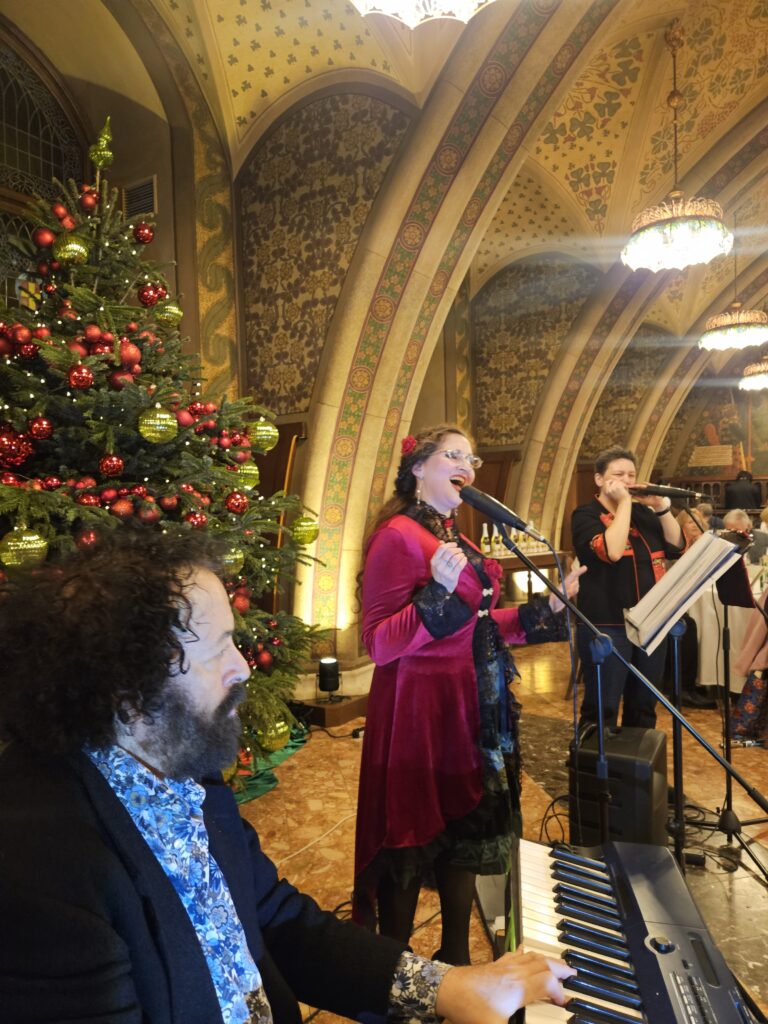 „18 Jahre Freizeitnetzwerk Tera-Vienna“ – dieses Jubiläum wurde heuer im historischen Rittersaal im Wiener Rathauskeller vor zahlreichem Publikum gefeiert. Für die geniale Musikbegleitung sorgten die einmalige Sängerin Naama Isabelle Fassbinder, die einzigartige Mundharmonikaspielerin Isabella Krapf, beide von Tera-Vienna, sowie der großartige Tastenvirtuose Elias Meiri am Keybord. 4 kreative Köpfe von Tera-Vienna Christine, Denise, Johanna & Seppo sorgen mit amüsanten Kurzlesungen für gute Laune & viele Lacher, ehe Imkermeister Eugen Aberer die Auflösung der Fragen seines Honig/Bienen Quizz bekanntgab, bei dem es neben Honig aus dem Augarten auch Prickelndes in der Flasche – gesponsert von MIMAZ Immobilien – zu gewinnen gab. Noch ein Novum an diesem Abend: spontan kam es zur Bildung eines Tera-Vienna Chores, als Isabella Krapf mit ihrer Mundharmonika „Hallelujah“ von L. Cohen anstimmte. Ein Abend voll guter Unterhaltung, bei dem sich neue Bekanntschaften ergeben und alte vertieft haben. Tera-Vienna kann sich über viele tolle Neuzugänge freuen! Großer Dank an den Wiener Rathauskeller für die wunderbare Kooperation – Service und Küche waren top – gepaart mit herzlicher Freundlichkeit!